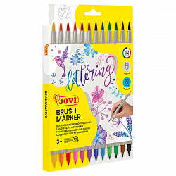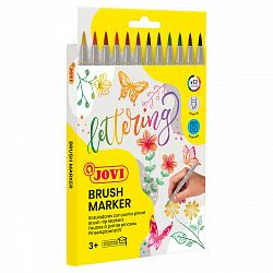 Набор двухсторонних маркеров-кистей JOVI "Lettering", 12цв., на водной основе, кисть/пулевидный