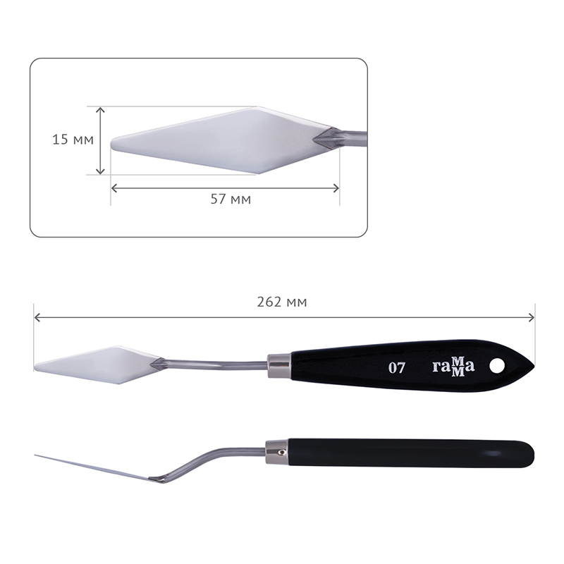 размер рабочей поверхности мастихина-56мм*11мм