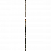 Главное отличие кистей серии – это упругий волос средней жесткости. Плотная набивка пучка и тонкая синтетическая нить дают идеальное сочетание для живописи. Кисть хорошо набирает краску, контролируемо её отдает, мягко отвечает на каждое движение художника. Кисти «Модерн» универсальны и подойдут для красок разной консистенции. Металлические колпачки имеют вентиляционные отверстия, однако после пленэра рекомендуется просушить кисть для долговечной службы. Корпус и обойма выполнены из никелированной латуни темного цвета с жемчужным эффектом, ручка кисти из березы, покрытая матовым лаком. Кисть в индивидуальном пакете.