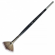 Главное отличие кистей серии – это упругий волос средней жесткости. Плотная набивка пучка и тонкая синтетическая нить дают идеальное сочетание для живописи. Выставка – 17 и 23 мм, диаметр – 48 мм. Кисть хорошо набирает краску, контролируемо её отдает, мягко отвечая на каждое движение художника. Веерная кисть состоит из синтетики разной жесткости: длинные жесткие волоски поддерживают форму, а мягкая короткая синтетика удерживает воду.