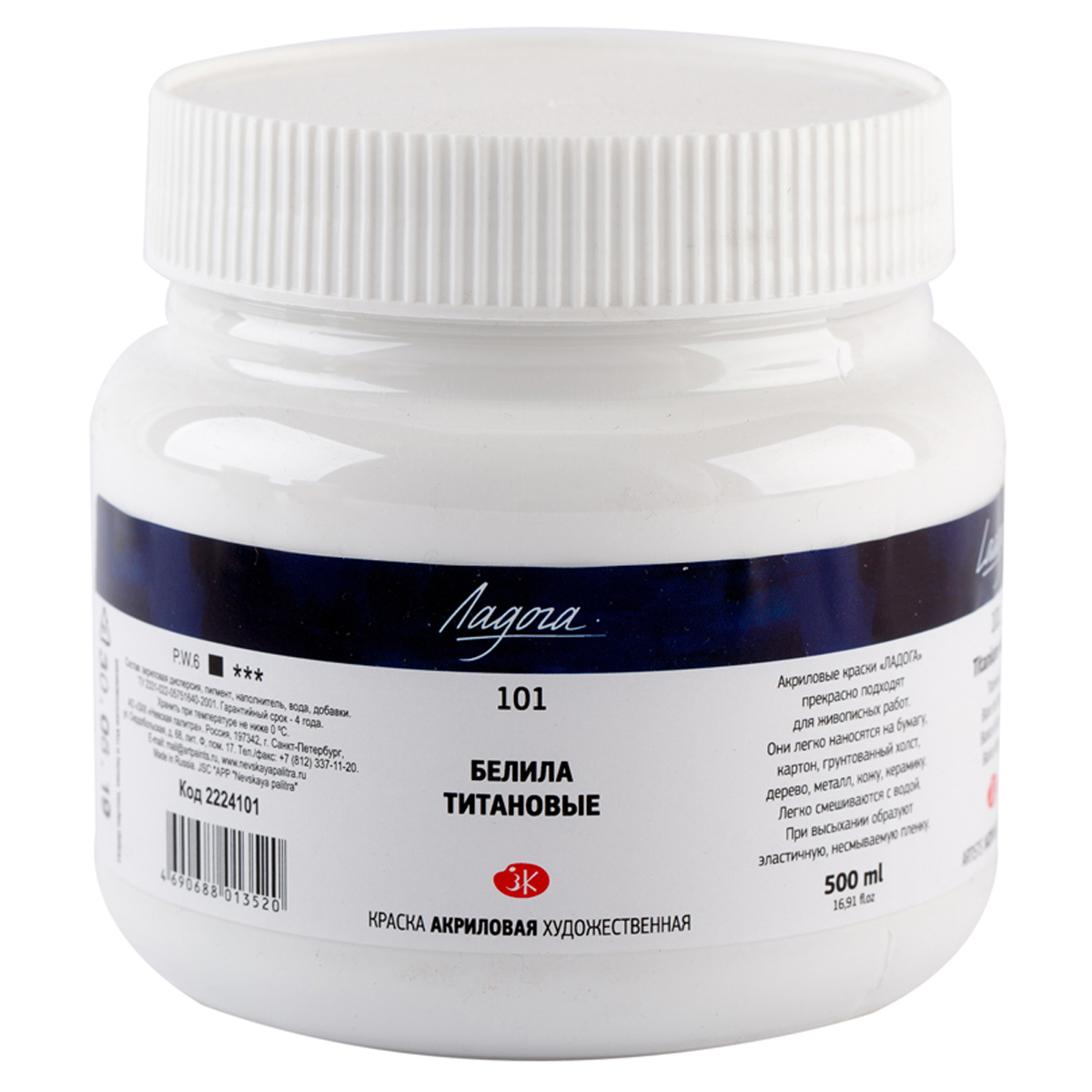 Краска акриловая художественная Ладога, 500мл, банка, белила титановые