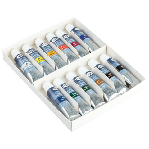 Цвет: белила титановые (009), голубой ФЦ (401), желто-лимонный (098), желтый средний, зеленый темный (537), зеленый ФЦ, карминовый, красный светлый (003), охра золотистая (114), ультрамарин (417), умбра жженая (610), черный