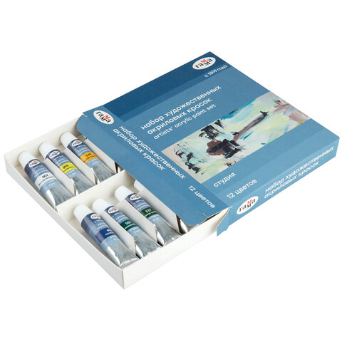 Краски акриловые художественные Гамма Студия 12 цветов, туба 9 мл