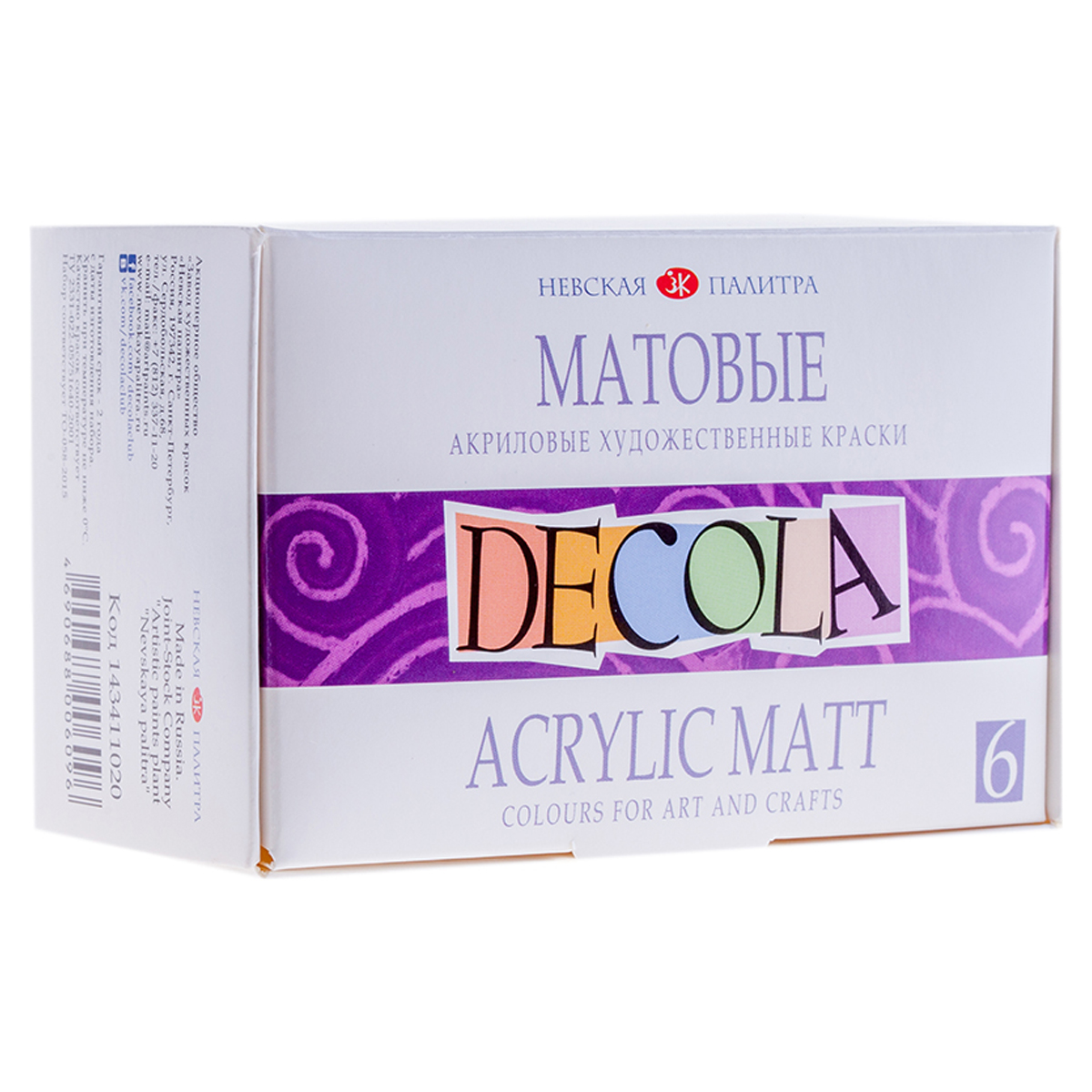 Краски акриловые Decola, 06 цветов, матовые, 20мл, картон