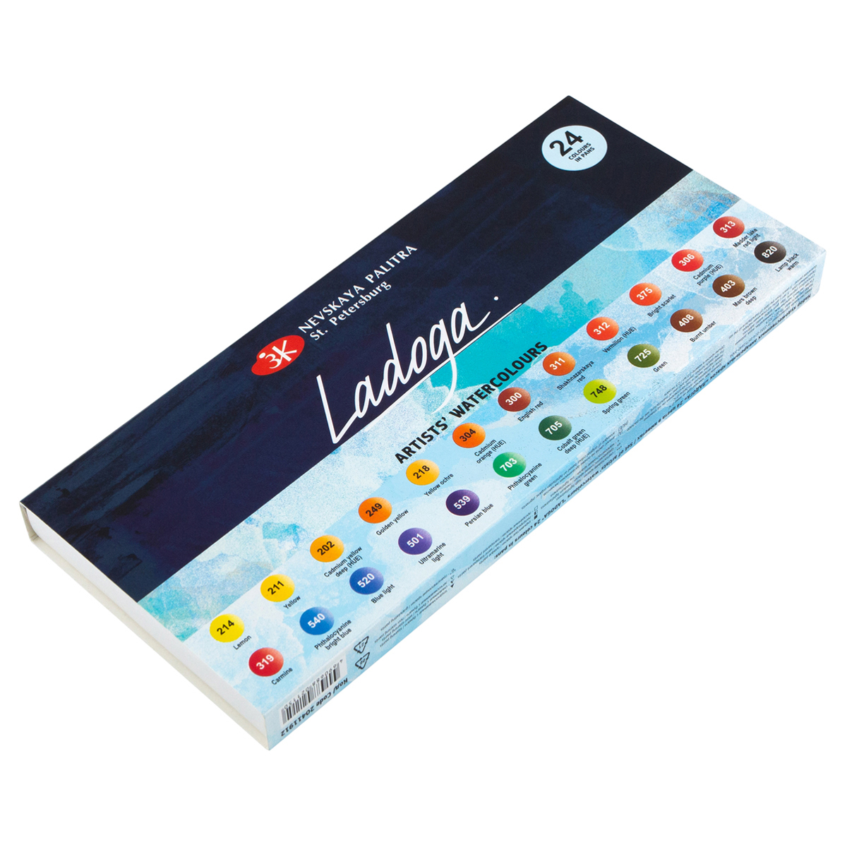 Акварель Ладога, художественная, 24цв., кюветы, картон