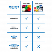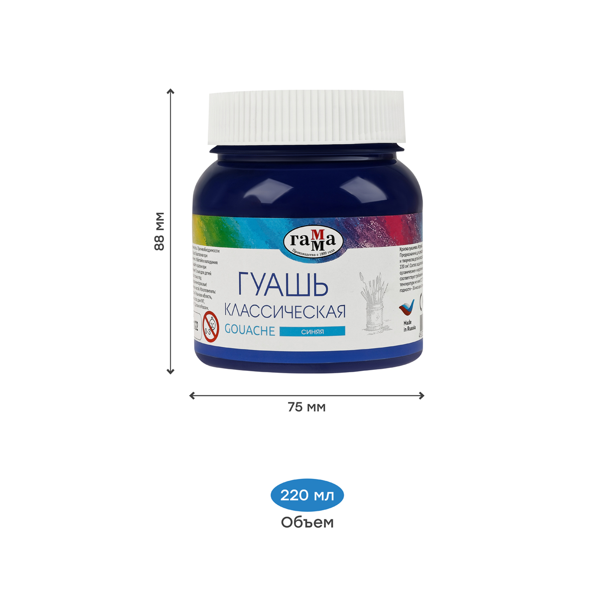 Детская гуашь разработана на основе качественного прозрачного связующего вещества, обеспечивающего чистоту цвета. Плотная, укрывистая текстура красок хорошо смешивается, равномерно наносится практически на любую основу. При высыхании даёт бархатистый матовый эффект. Гуашь идеально подходит для групповых занятий в детских садах и школах, а также для тех, кто много рисует. Большого объёма краски хватит на целый класс.