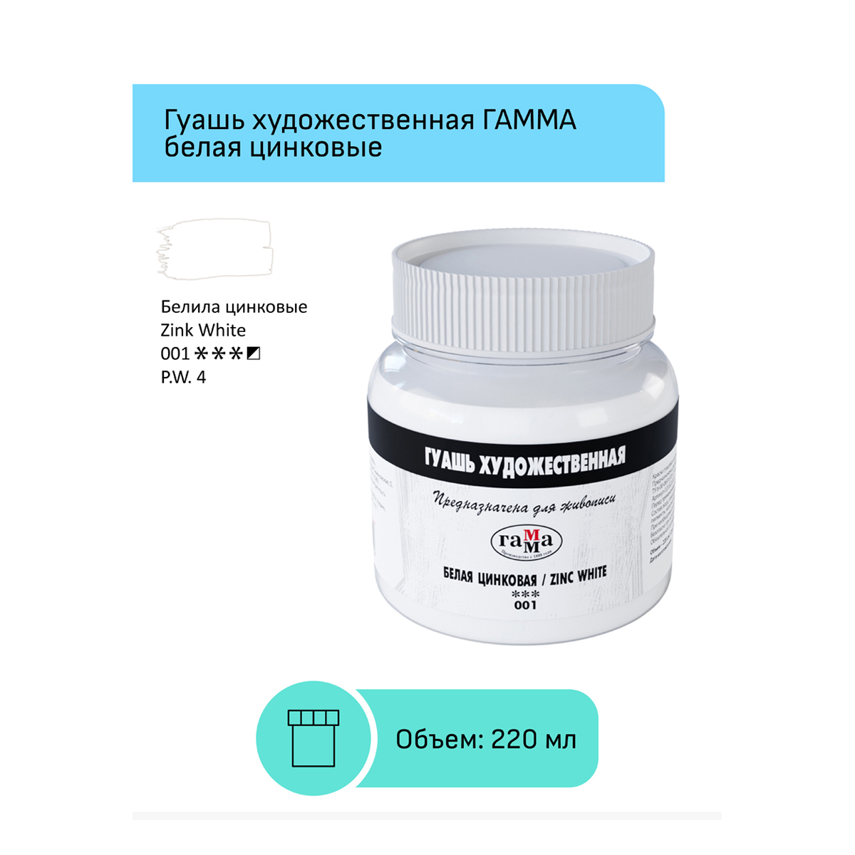Гуашь художественная Гамма, белая цинковая, 220мл
