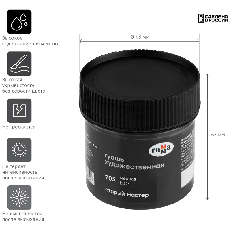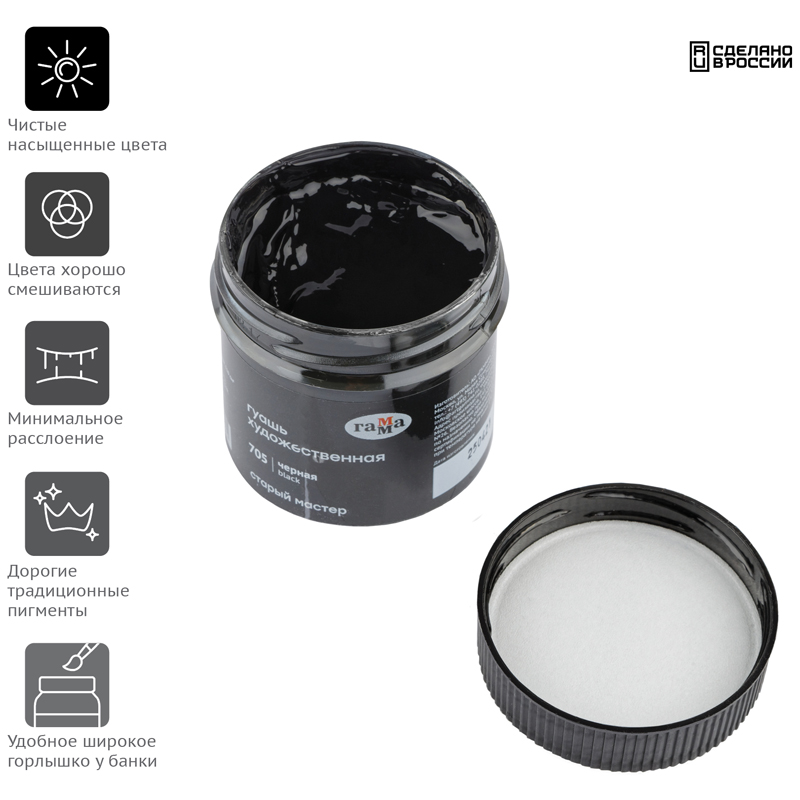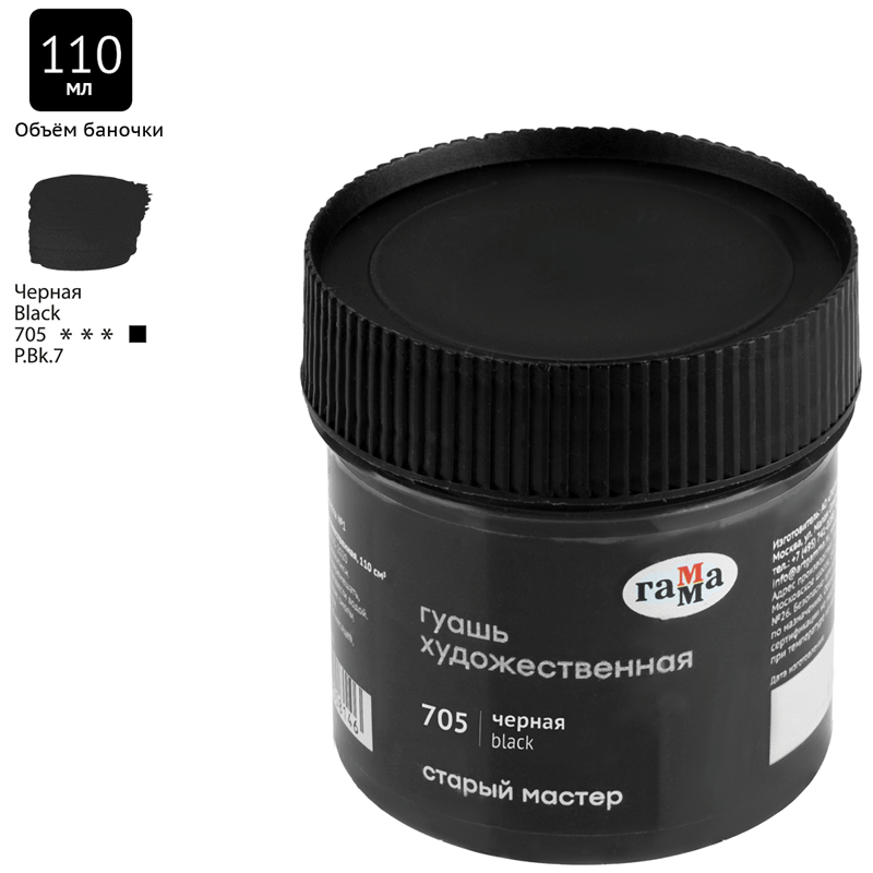 Гуашь художественная Гамма "Старый Мастер", черная, 110мл