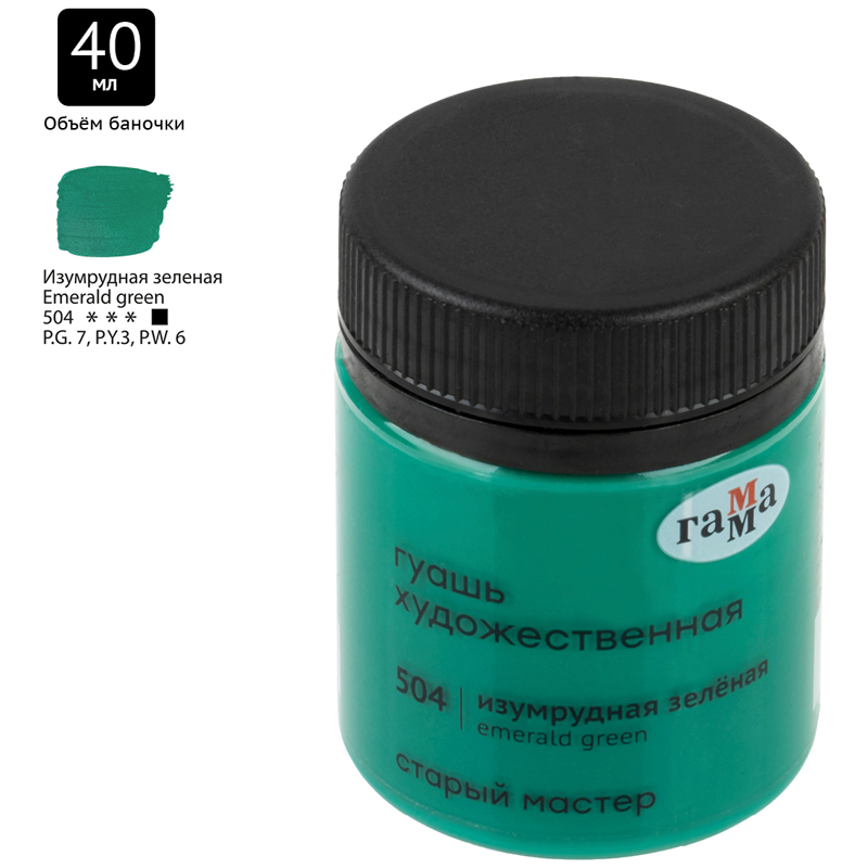 Гуашь художественная Гамма "Старый Мастер", изумрудная зеленая, 40мл