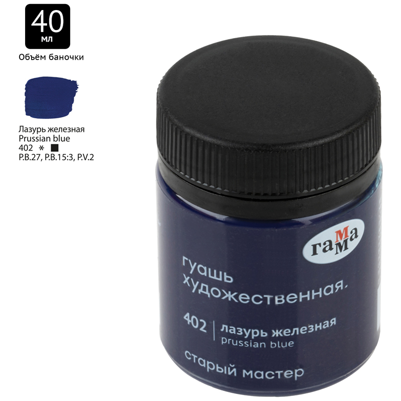 Гуашь художественная Гамма "Старый Мастер", лазурь железная, 40мл