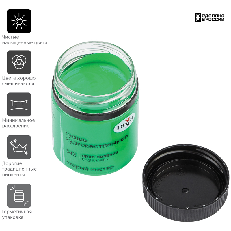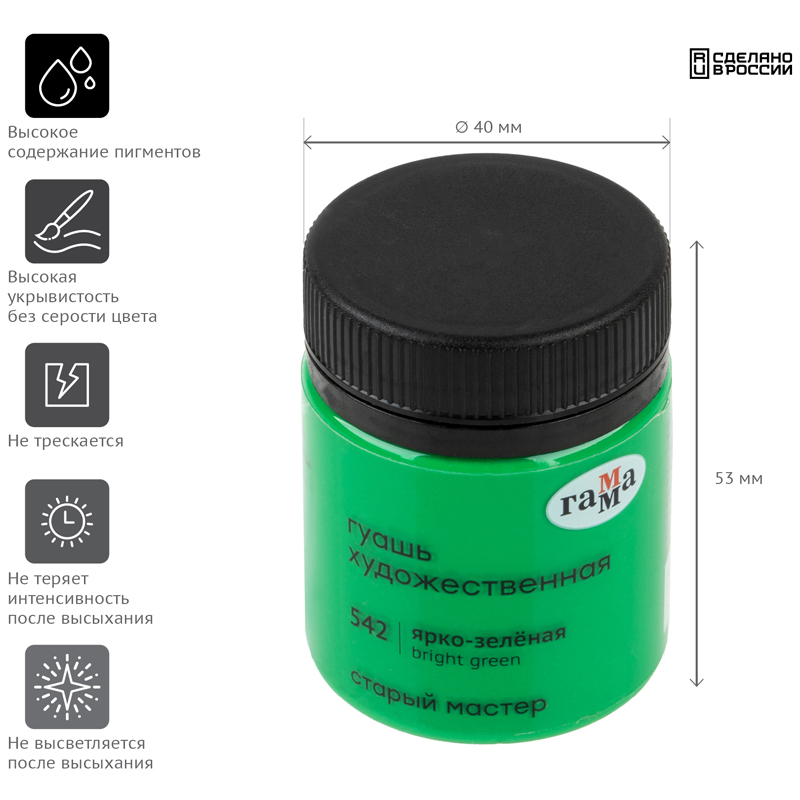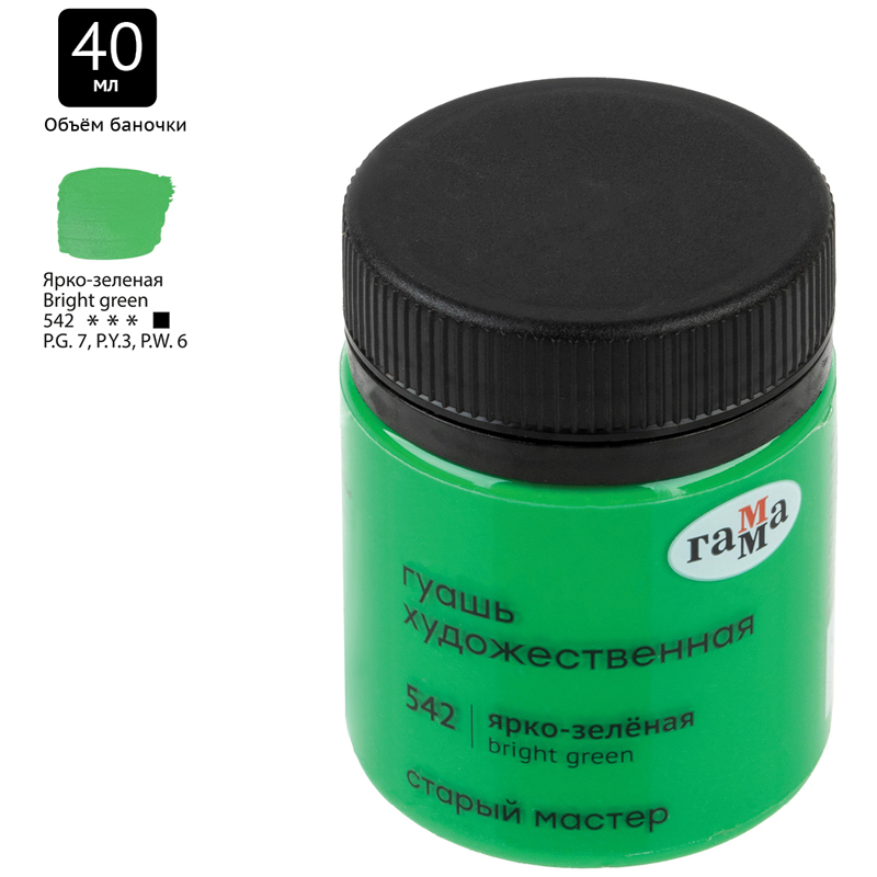 Гуашь художественная Гамма "Старый Мастер", ярко-зеленая, 40мл