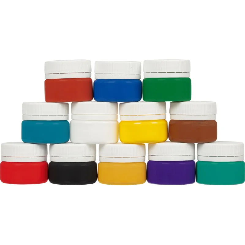 Состав набора: белила титановые, желтая, охра светлая, красная, английская красная, фиолетовая, сине-зеленая, синяя, изумрудно-зеленая, зеленая темная, коричневая, черная.