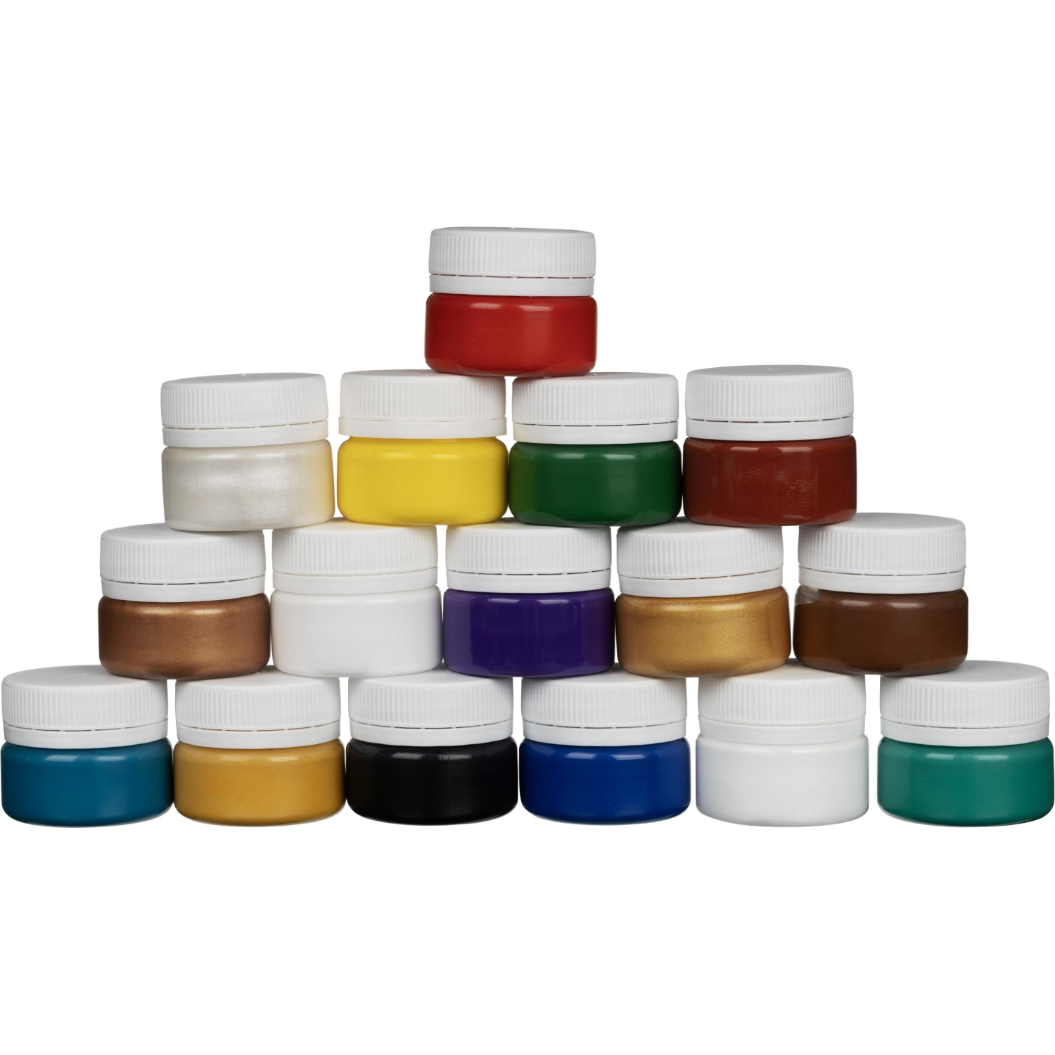 Состав набора: белила титановые, белила титановые, желтая, охра светлая, красная, английская красная, фиолетовая, сине-зеленая, синяя, изумрудно-зеленая, зеленая темная, коричневая, черная, светло серебристая, золотистая, бронза.