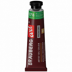 Краска масляная художественная BRAUBERG ART PREMIERE, 46 мл, проф. серия, ТРАВЯНАЯ СВЕТЛАЯ, 191434
