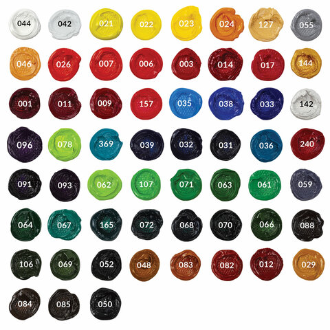 Краска имеет 5 степеней затирки пигмента. Вязкая текстура краски обеспечивает сохранение ее эластичности в течение длительного времени. Все краски легко смешиваются между собой. Объем тубы - 46 мл.