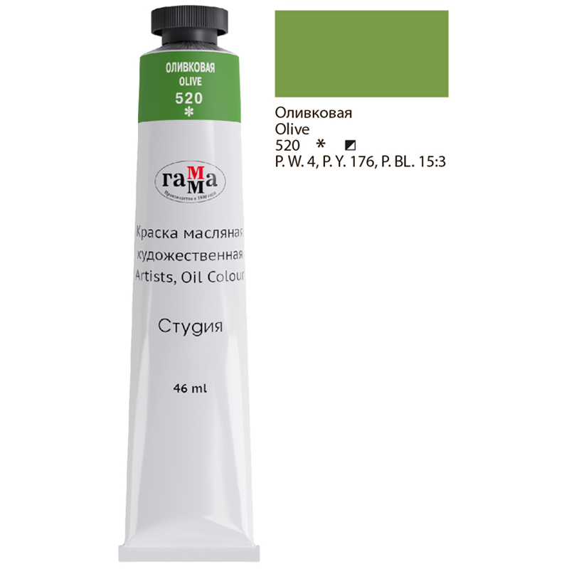 Краска масляная художественная Гамма "Студия", 46мл, туба, оливковая