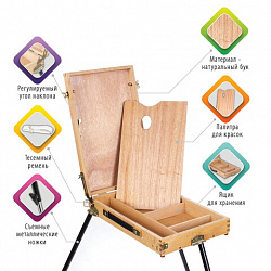 Этюдник-мольберт из бука настольный с ящиком, 27х37х67см, высота холста до 53см, BRAUBERG ART,192251