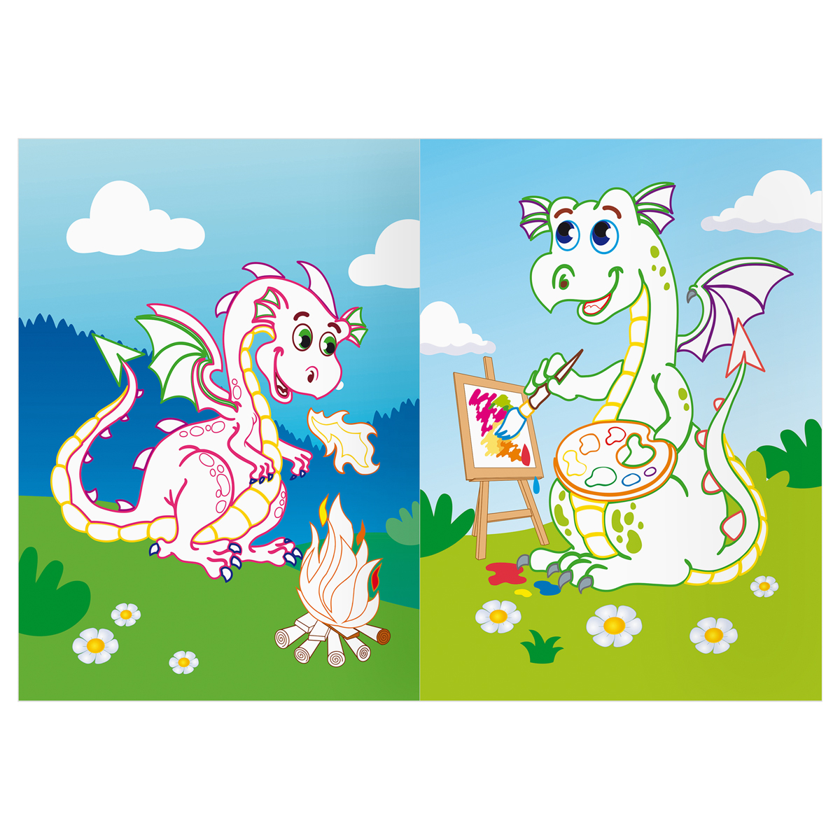 Раскраска с цв. фоном А5, 8 стр., ТРИ СОВЫ "Дракончики"