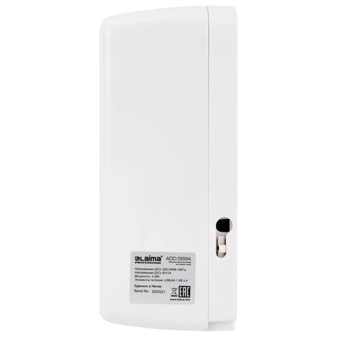 Объем – 1 л. Оснащен инфракрасным сенсором. Работает от четырех батареек LR6 АА. Также есть возможность подключения дозатора к сети переменного тока 220 V по средствам адаптера. Параметры адаптера: 6В, 1А, "-" снаружи, "+" внутри. Адаптер и батарейки в комплект не входят.