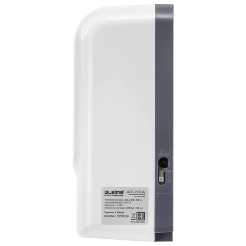Объем – 1 л. Оснащен инфракрасным сенсором. Работает от четырех батареек LR6 АА. Также есть возможность подключения дозатора к сети переменного тока 220 V по средствам адаптера. Параметры адаптера: 6В, 1А, "-" снаружи, "+" внутри. Адаптер и батарейки в комплект не входят.