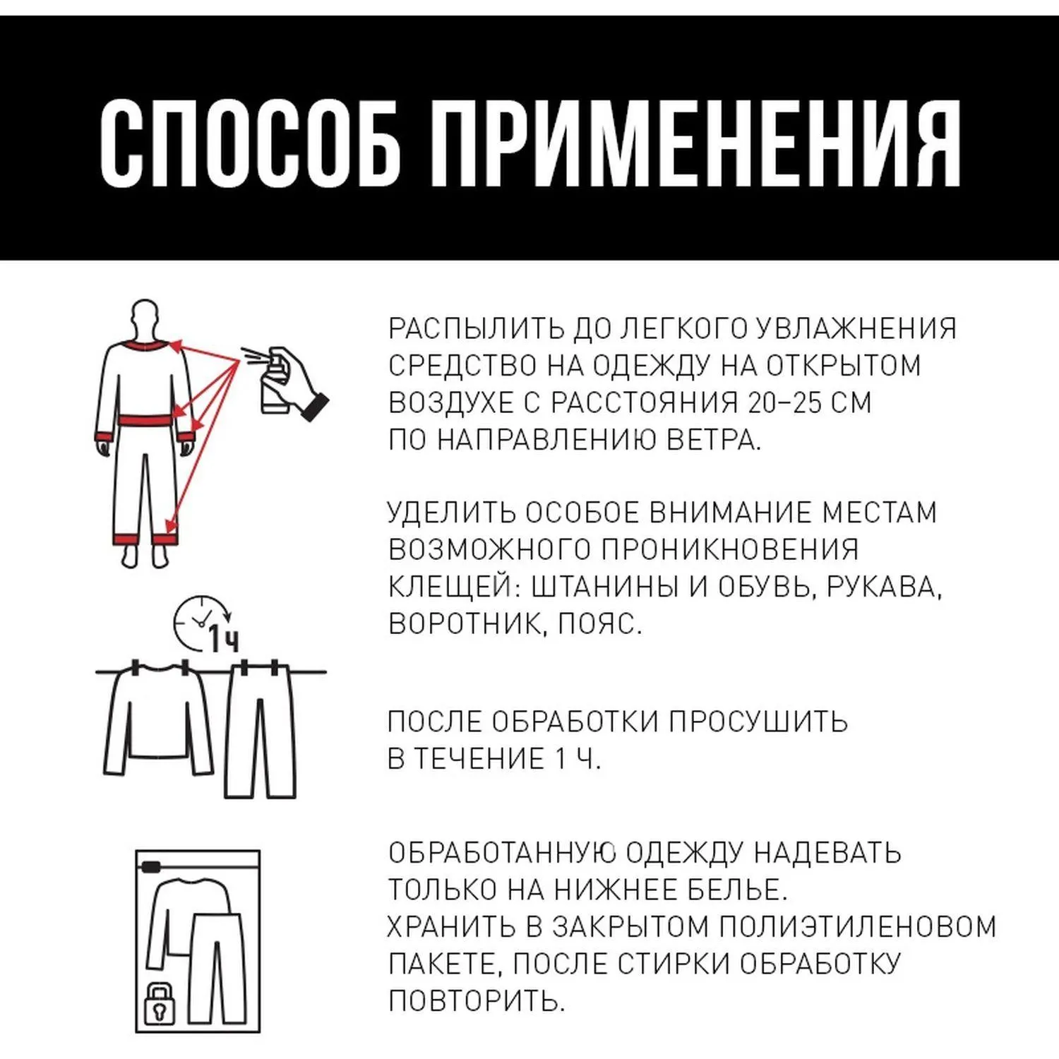 Способ применения: наносите спрей на открытые участки тела или одежду, избегая попадания в глаза и слизистые оболочки.