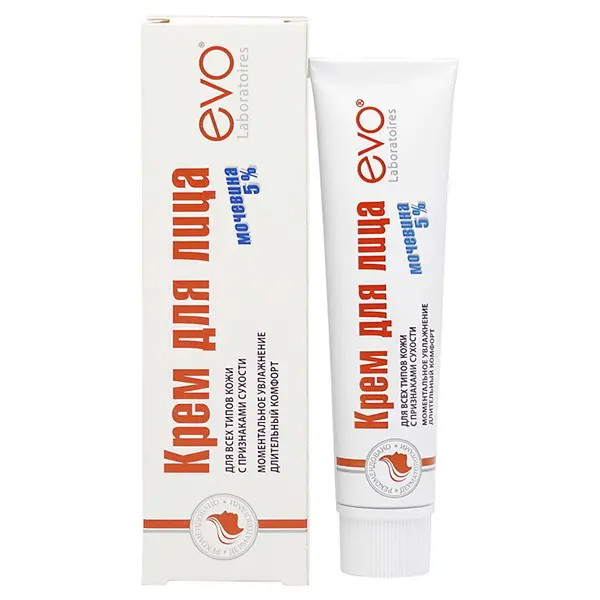 Крем для лица EVO с мочевиной 5% для всех типов кожи с признаками сухости моментально увлажняет сухую кожу лица, делает её мягкой и гладкой на долгое время.