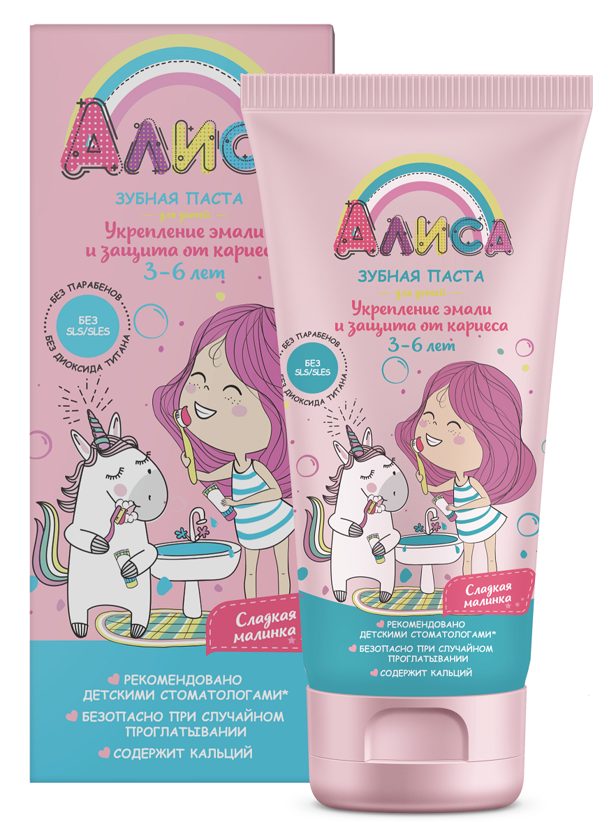 Зубная паста «Алиса» предназначена для профилактики кариеса и укрепления десен у детей от 3 до 6 лет. Мягкая очищающая система позволяет бережно ухаживать за зубками, не повреждая структуру эмали молочных и первых постоянных зубов. Сладкий вкус и аромат спелой малинки доставят удовольствие ребенку и помогут ему привыкнуть регулярно чистить зубки, а благодаря активным компонентам (лактату кальция, экстракту малины, пантенолу, бисабололу и натрия монофторфосфату) зубки будут здоровыми и крепкими.
