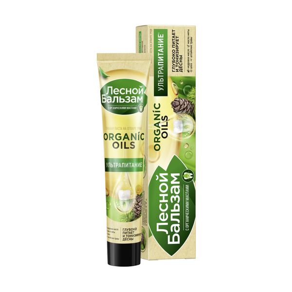 Зубная паста Лесной бальзам Экстравосстановление с органическими маслами и алоэ поддерживает здоровье десен, сохраняет чистоту полости рта и свежесть дыхания в течение дня.