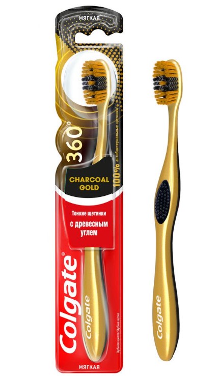 Colgate зубная щетка 360º золотая с древесным углем многофункциональная антибактериальная мягкая золотая
