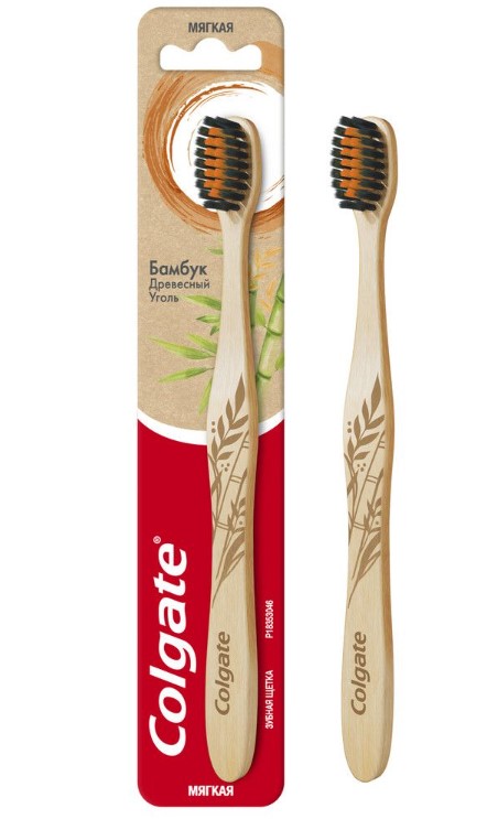 Colgate зубная щетка бамбук древесный уголь черная мягкая