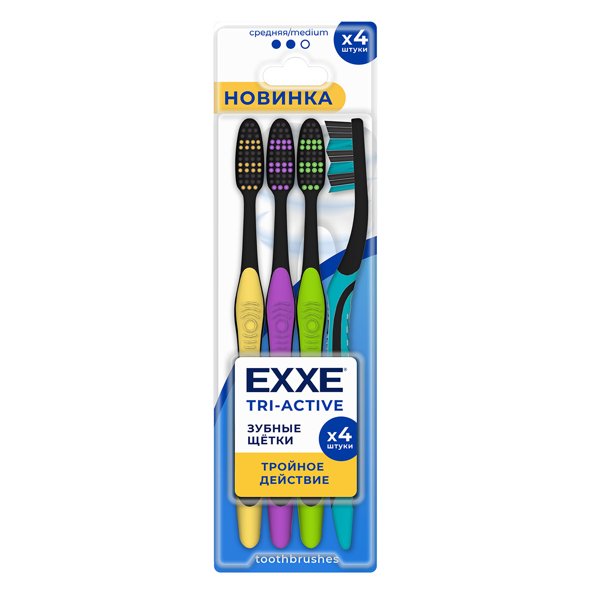 Зубная щетка EXXE Tri-active, средняя, 4 шт