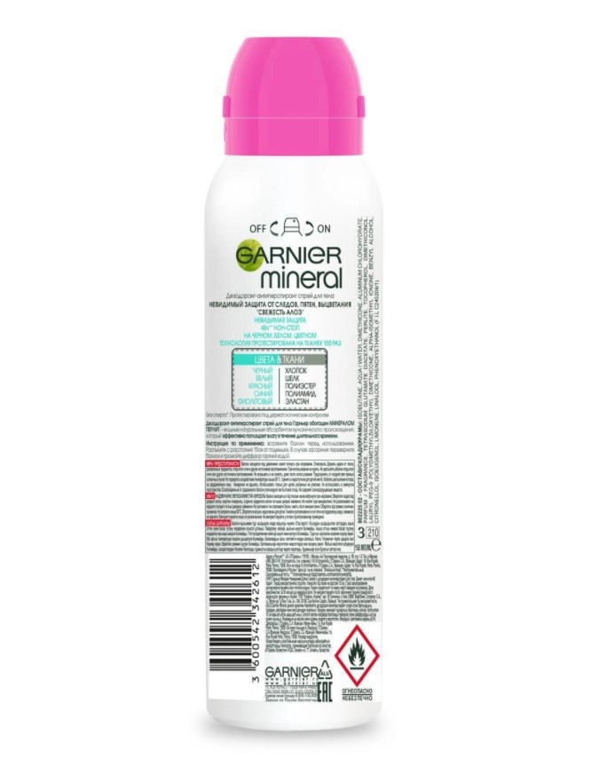 Дезодорант-антиперспирант Garnier Mineral Невидимый Чёрное Белое Цветное спрей 150 мл