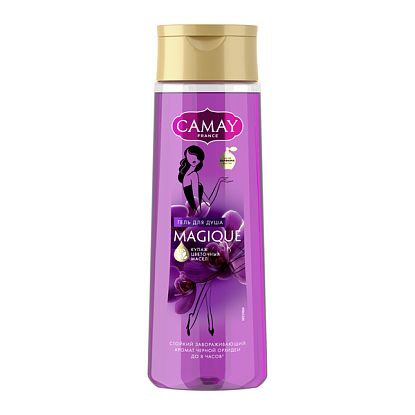 Необычайная стойкость аромата CAMAY Магическое заклинание Этот чувственный, завораживающий аромат геля для душа Camay Магическое заклинание собрал в себе нотки редкой черной орхидеи и насыщенные тона темных цветов. Попробуйте настоящее произведение парфюмерного искусства. В верхних нотах этого экзотического аромата вы услышите игривый аромат красной смородины. Средние ноты насыщены теплым, глубоким и терпким запахом редкого цветка черной орхидеи и насыщенных тонов темных цветов. А базовые ноты будут раскрываться на вашей коже еще длительное время после душа чувственным и завораживающим ароматом сандала и драгоценной амбры. Раскройте все грани своей чувственности с помощью магического сочетания ароматов Camay Magique. Приятная текстура геля хорошо вспенивается и мягко очищает кожу. А благодаря технологии Fragrance Pearls™ в составе геля для душа, его пленительный аромат остается на коже до 8 часов после душа!* Поэтому куда бы Вы ни пошли