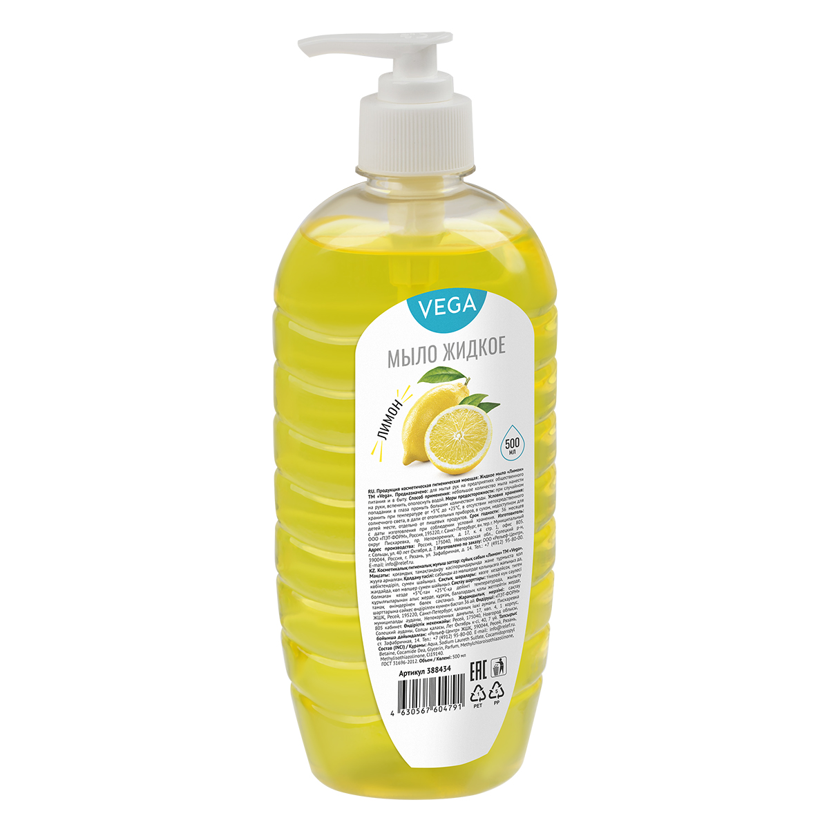 Мыло жидкое Vega "Лимон", дозатор, 500мл