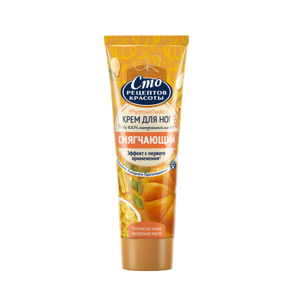 100 РЕЦЕПТОВ КРАСОТЫ 80мл Крем для ног Тыква и кукурузное масло Смягчающий