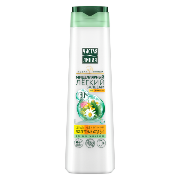 Чистая Линия бальзам для волос легкий мицеллярный экспертный уход 5в1 без силиконов 380 мл