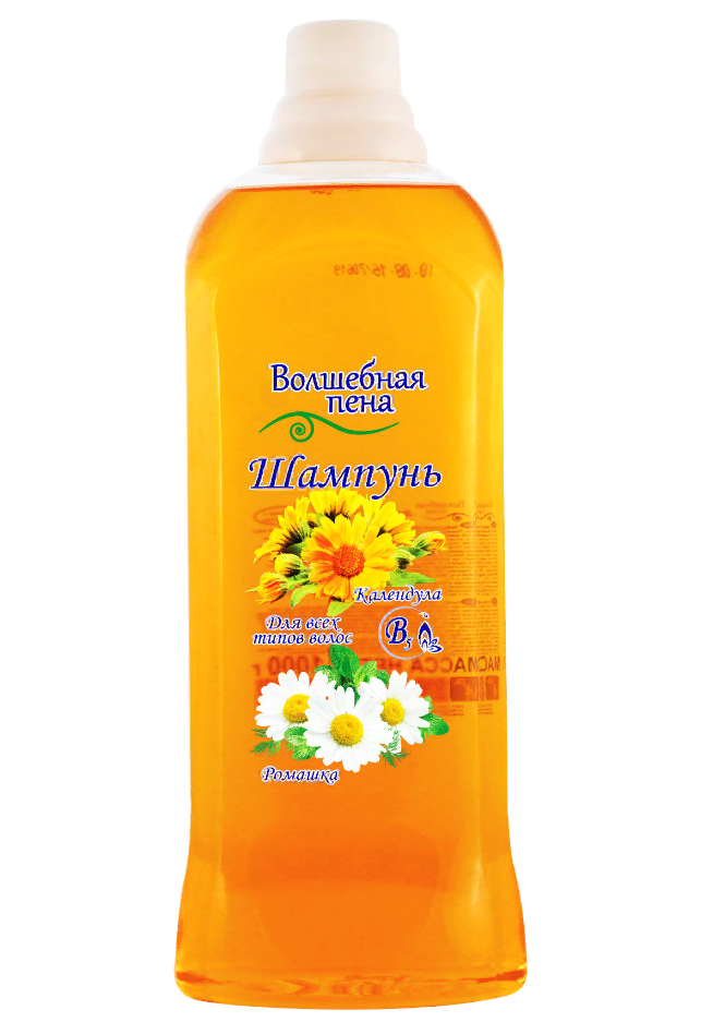 Шампунь серии Волшебная пена -для всех типов волос с провитамином В5. Эффективный мягкий шампунь подходит для всех типов волос, восстанавливает поврежденную структуру волоса, питает и укрепляет корни, придает волосам силу и блеск.