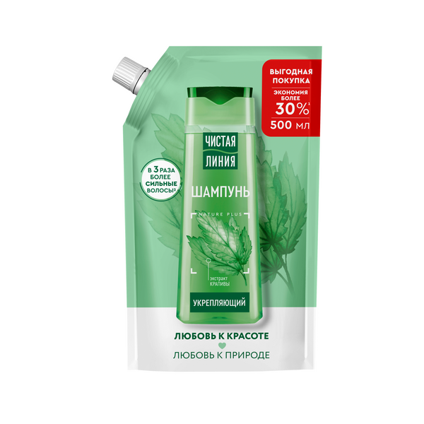 ЧИСТАЯ ЛИНИЯ 500мл Шампунь Крапива для всех типов волос, дой-пак