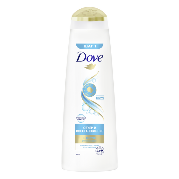 Шампунь Dove Объем и восстановление с комплексом Hydra-Lift обеспечивает необходимый уровень питания и дополнительного увлажнения для тонких, безжизненных волос. Легкая формула придает волосам великолепную гладкость и плотный подвижный объем. Шампунь придает волосам в 2 раза больше объема без утяжеления. С каждым разом волосы выглядят более пышными, густыми и упругими! Dove дарит особенный уход для Ваших волос. Шампунь Dove с комплексом Hydra-Lift обеспечивает необходимый уровень питания и дополнительного увлажнения для тонких, безжизненных волос. Легкая формула придает волосам великолепную гладкость и подвижный объем.