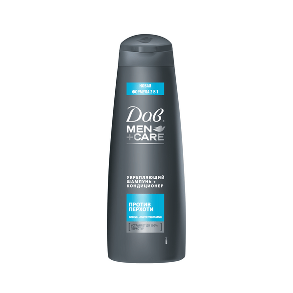Укрепляющий мужской шампунь-кондиционер DOVE Men + Care От перхоти не только очищает волосы, он ухаживает за волосами и устраняет проблемы с перхотью. В него входит комплекс Zinc Pyrithione, который способствует устранению перхоти и воздействует на причину ее появления, а кофеин в составе способствует укреплению волос, оказывая стимулирующее действие на корни. Продукт наполняет волосы силой и энергией изнутри. Теперь твои волосы свежие и сильные.