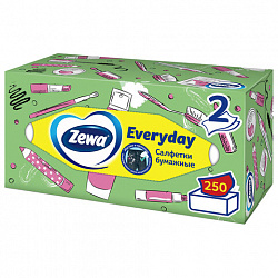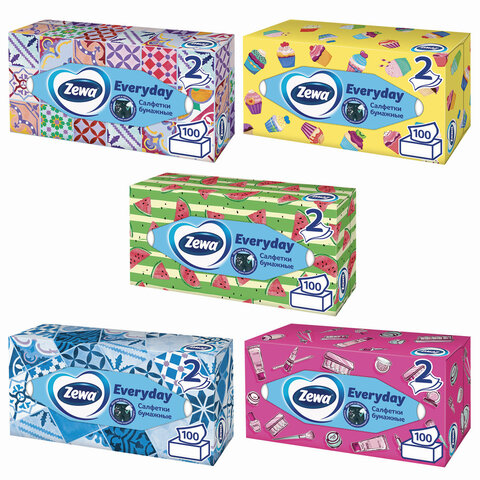 ZEWA 100шт Салфетки косметические Everyday 2-х слойные, в картонном боксе, белые