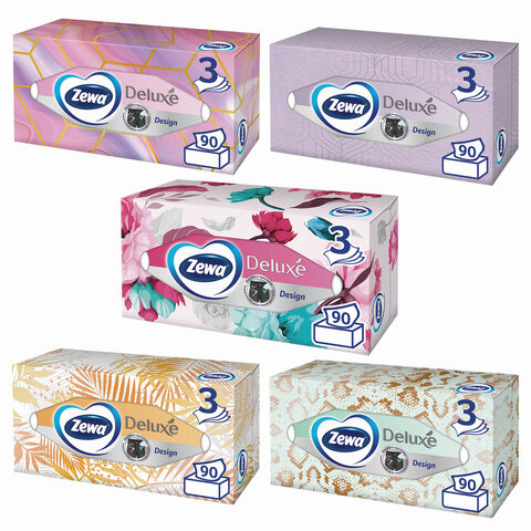 ZEWA 90шт Салфетки косметические 3-слойные Delux Design в картонном боксе