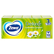 Носовые платочки бумажные Zewa Deluxe с ароматом ромашки 3-слойные (10 пачек по 10 платков).