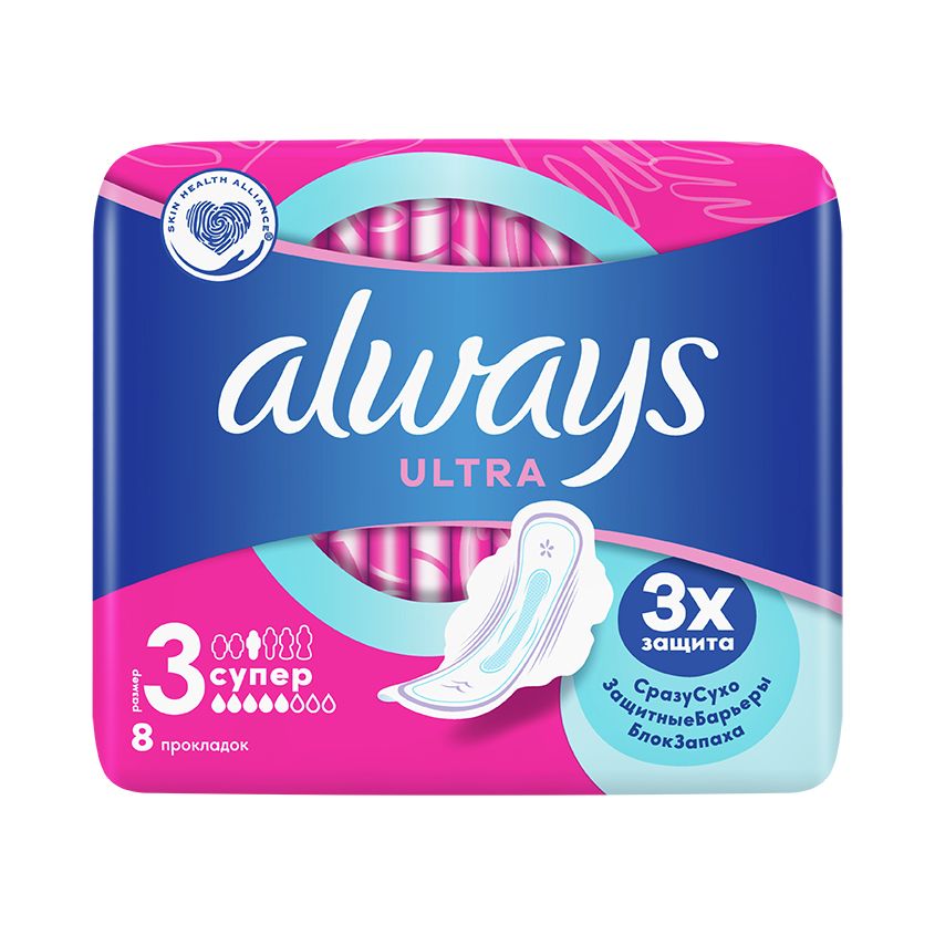 Женские гигиенические прокладки с крылышками Always Ultra Супер, размер 3, капли 5.Прокладки Always Ultra Super предназначены для применения при незначительных и умеренных выделениях (рекомендованы для нижнего белья размеров M и L). Могут также использоваться обладательницами размера S при обильных выделениях. Супервпитывающий внутренний слой содержит гель, который мгновенно поглощает и удерживает влагу, а защитные контуры SecureGuard обеспечивают дополнительную защиту и держат жидкость под контролем. Особая технология не просто маскирует, а полностью блокирует неприятные запахи. Благодаря мягким крылышкам изделия надежно фиксируются на нижнем белье. Толщина прокладки всего 3 см, поэтому она практически незаметна под одеждой. Прокладки Always не содержат хлорного отбеливателя и токсичных красителей. Все используемые материалы подвергаются тщательным проверкам, что является гарантией их высокого качества и абсолютной безопасности. Каждое изделие находится в индивидуальной упаковке.
