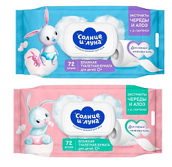 СОЛНЦЕ И ЛУНА 72шт Влажная туалетная бумага для детей с экстрактом череды