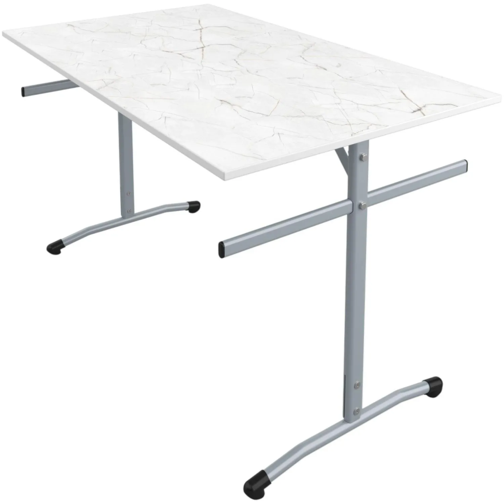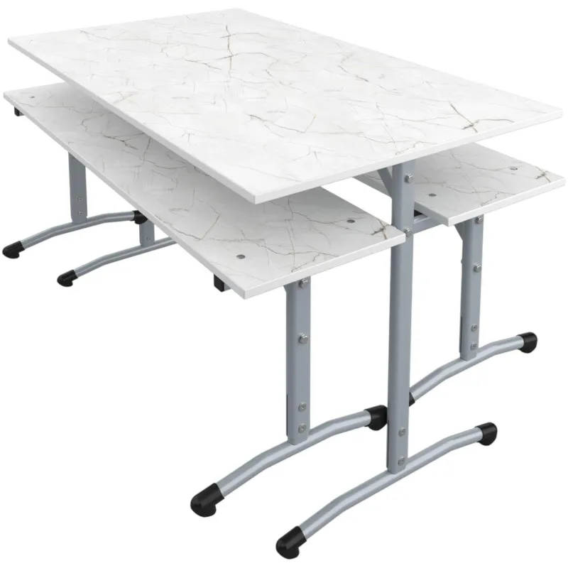 Внимание! Пожалуйста, проверяйте цвет изделия до начала сборки! Цвет на изображении товара в интернет-магазине или в печатном каталоге может отличаться от оригинала из-за особенностей цветопередачи.Стол обеденный. Столешница обеденного стола изготавливается из МДФ толщиной 16 мм. Торцы у столешницы закрываются ударопрочной кромкой ПВХ толщиной 2 мм. Опоры стола имеют телескопическую регулировку по высоте на 700 мм и 760 мм, выполнены из профиля круглого сечения диаметром 25 мм и плоскоовального сечения 45×25 мм, 40×20 мм с толщиной стенок не менее 1,5 мм. Подвесы для скамьи выполнены из профиля плоскоовального сечения 30×15 мм с толщиной стенок не менее 1,5 мм. Каркас покрыт порошковой краской, стойкой к химическим и механическим воздействиям. Опоры стола соединяются между собой траверсой телескопической, выполненной из профиля плоскоовального сечения 45×25 мм и 40×20 мм, что придаёт конструкции стола дополнительную жёсткость. На свободных концах труб установлены заглушки из ударопрочных полимеров. Каркас стола имеет полимерные подпятники, предотвращающие повреждение напольного покрытия. Крепление столешницы — болты с шестигранной головкой и футорки.