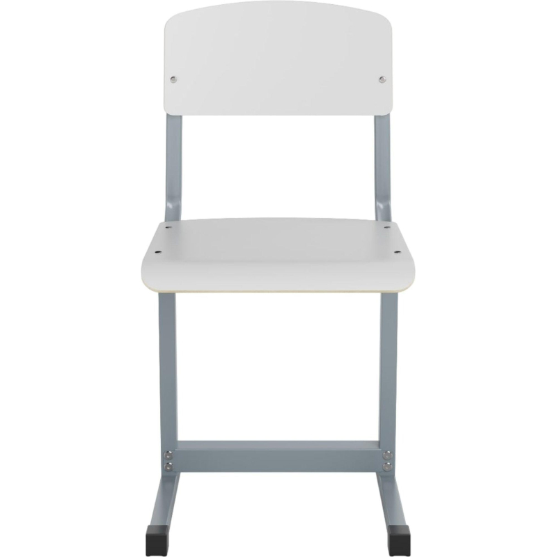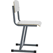 Стул. Сиденье и спинка стула изготовлены из гнутоклееной фанеры толщиной не менее 8 мм, покрытой цветным декоративным пластиком. Крепление сиденья и спинки к каркасу стула осуществляется при помощи мебельных болтов и гаек. Металлический каркас стула разборный — состоит из трех элементов: двух боковин и связи. Боковины стула цельносварные, выполнены из профиля квадратного сечения 25×25 мм с толщиной стенок не менее 1,2 мм. Стойки стула наклонены вперед на 10 градусов, а спинка имеет угол наклона 95 градусов. Связь выполнена из профиля прямоугольного сечения 25×40 мм с толщиной стенок не менее 1,2 мм и крепится к стойкам стула на 4 болта с гайками Эриксона. Металлокаркас покрыт порошковой краской, стойкой к химическим и механическим воздействиям. На свободных концах труб установлены заглушки из ударопрочных полимеров. Каркас стула имеет полимерные подпятники, предотвращающие повреждение напольного покрытия. Стул имеет цветовую маркировку в соответствии с ростовыми группами.