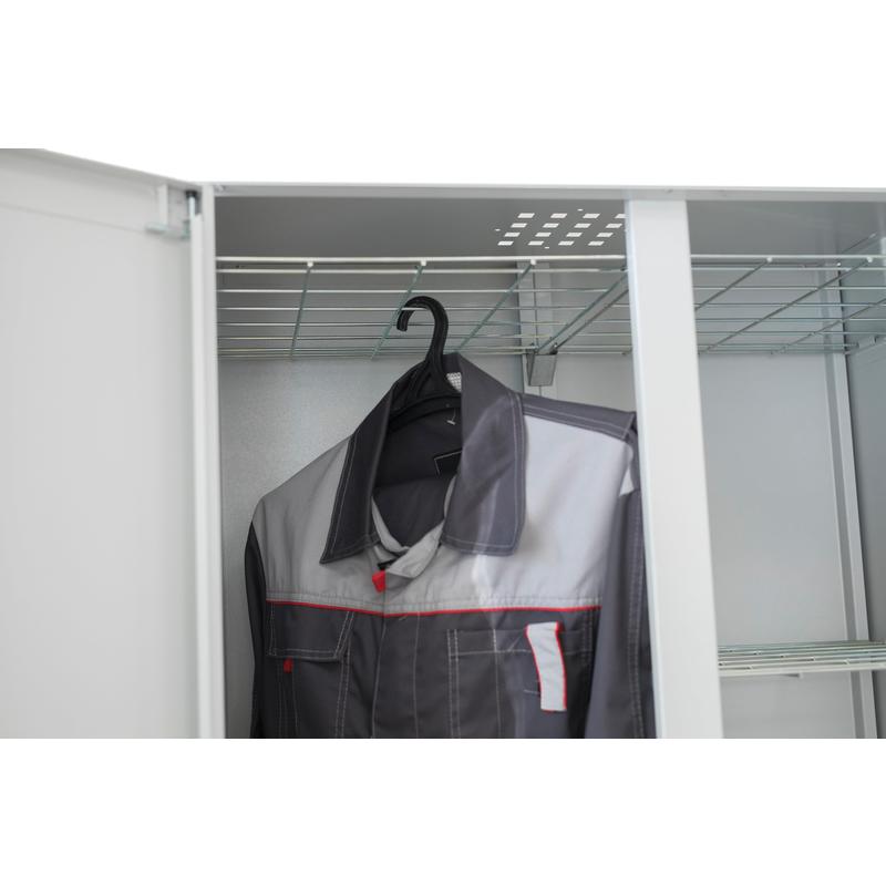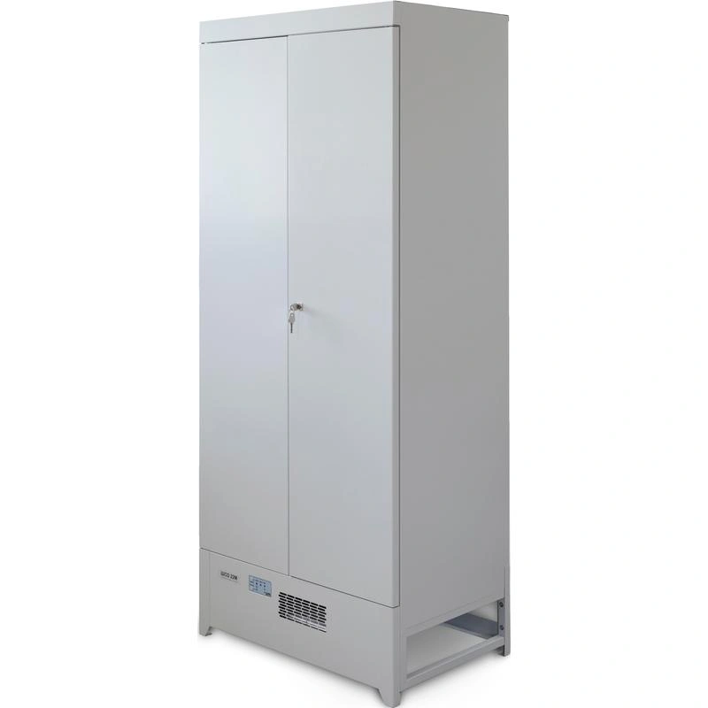 Внимание! Пожалуйста, проверяйте цвет изделия до начала сборки! Цвет на изображении товара в интернет-магазине или в печатном каталоге может отличаться от оригинала из-за особенностей цветопередачи.Верхняя часть корпуса закрывается двумя дверьми, в одной из которых установлен почтовый замок, запирающий одновременно обе двери. Внутри верхняя часть корпуса снабжена шестью съёмными сетчатыми полками. На полки можно укладывать для сушки рукавицы, головные уборы или обувь. К сетчатым полкам можно также подвешивать плечики с одеждой. В крышке шкафа расположено отверстие для выхода воздуха. В комплекте фланец для подключёния к внешней системе вентиляции. Нижняя подставка шкафа представляет собой рамную конструкцию, состоящую из передней и задней панелей, изготовленных из листовой стали, двух боковых и одной нижней рам, изготовленных из профильной трубы. В передней панели встроен блок нагрева. Блок нагрева состоит из: тангенциального вентилятора, игольчатого слюдяного нагревателя и электронного блока управления. Кнопки управления и световая индикация режимов работы расположены на лицевой стороне блока нагрева. В качестве защиты от перегрева используется термоплавкий предохранитель (без возврата в исходное положение). Рамная конструкция нижней подставки усиливает прочность и жёсткость шкафа, что даёт возможность переносить или передвигать его, кроме того, открытое с боковых сторон пространство, делает возможным влажную уборку пола под шкафом.