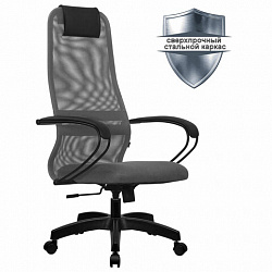 Кресло BRABIX "Prestige Ergo MG-311", регулируемая эргономичная спинка, ткань, черно-синее, 531876