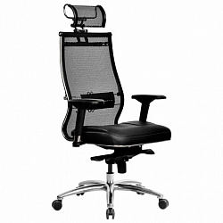 Кресло офисное МЕТТА "SAMURAI" SL-3.05, с подголовником, сверхпрочная ткань-сетка/экокожа, черное